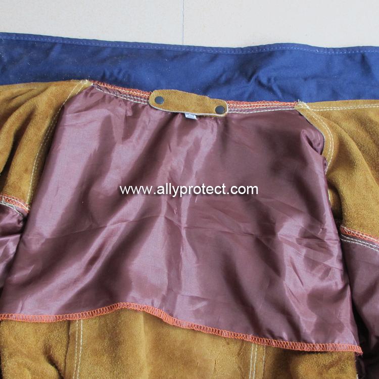 前胸防護條設計,防止燒焊飛濺物濺入衣內,雙層皮設計防止撕脫。